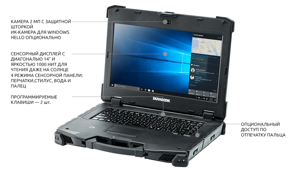 Полностью защищенный ноутбук DURABOOK Z14I-G2 создан в сочетании с новейшим процессором Intel® Core™ 11-го поколения и мощной графикой Iris® Xe для работы в режиме многозадачности и способен выдерживать даже самые жесткие условия окружающей среды. Он обладает классом защиты IP65, выдерживает падения с высоты до 1,8 метра. Это характеризует Z14I-G2 как защищенный ноутбук с запасом прочности, больше чем у аналогичных устройств на рынке.