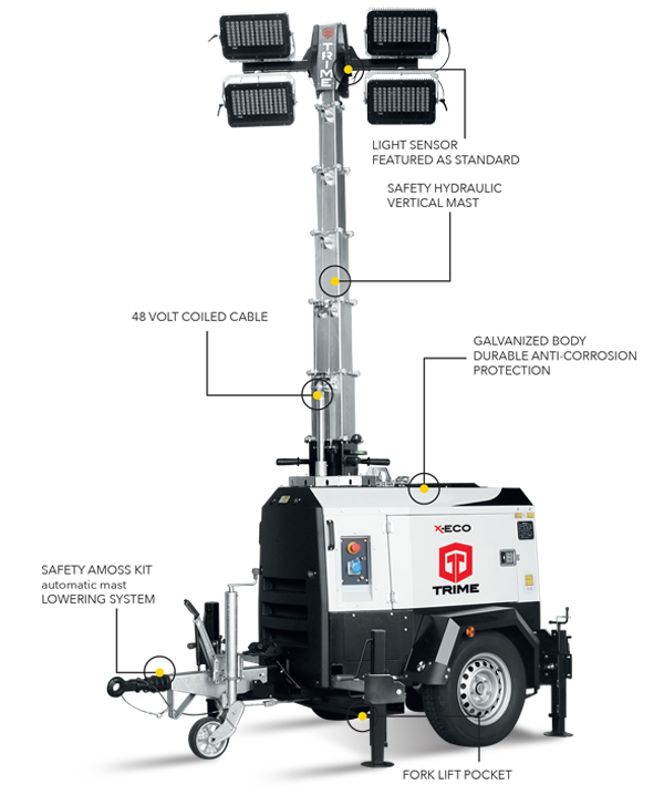 Инженеры TRIME знают, что рынку нужна осветительная вышка, которая была бы прочной, долговечной и безопасной. X-ECO был создан исходя из этих характеристик. Это лучшее решение для ваших нужд и гарантирует 5000 кв.м. освещенной площади. На стандартный грузовик можно загрузить 14 единиц. Ко всему этому мы добавили технологию, обеспечивающую максимальную эффективность и надежность топлива.