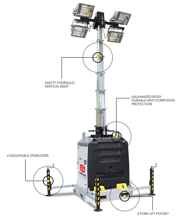 - Количество ламп - 4 (150 Вт LED)