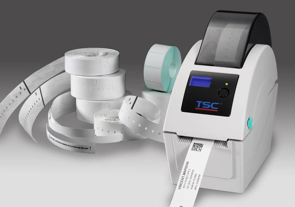 Принтер TSC TDP-225W для печати браслетов с разрешением 203 точки на дюйм разработан специально для идентификации пациентов и контроля доступа на развлекательные мероприятия.
