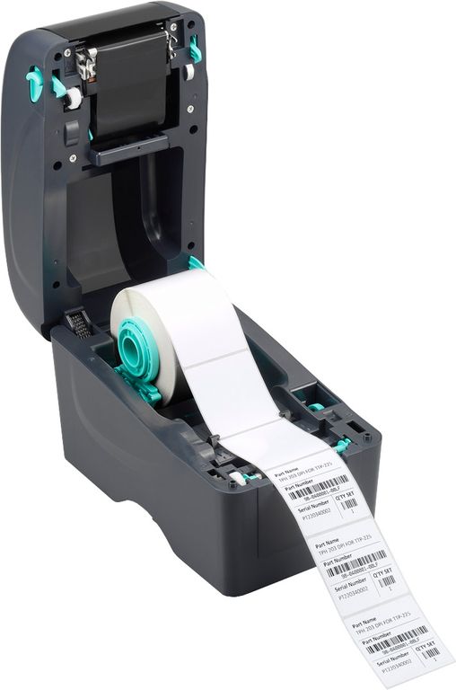 Принтер этикеток TSC ТТР 225 имеет удобную конструкцию с возможностью установки больших 5-дюймовых рулонных носителей. Надежная конструкция и эргономичный дизайн – отличное решение для тех, кто использует этикетки или ярлыки шириной 2 дюйма. Просто откройте крышку и закрепите этикетки по ширине направляющих. Принтер оборудован двумя видами датчиков по умолчанию: «на просвет» и «черной метки», последний перемещается по всей ширине печати.