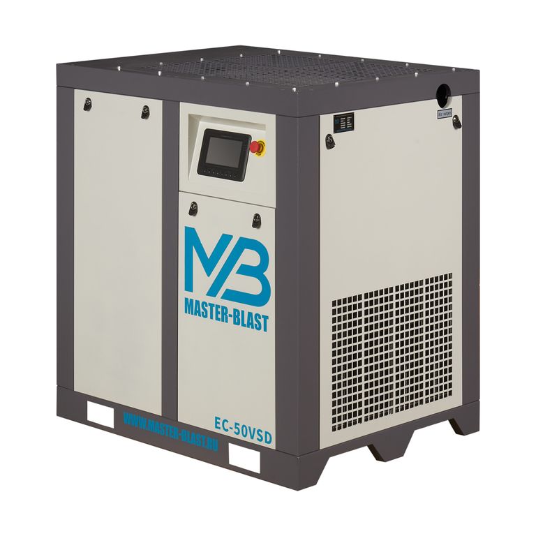 Винтовой компрессор Master Blast EC-50 VSD — оснащён электрическим двигателем, который обеспечивает его работу. Благодаря использованию винтового блока достигается высокая эффективность и надёжность работы оборудования. Компрессор имеет компактные размеры и низкий уровень шума, что позволяет устанавливать его в непосредственной близости от рабочих мест.